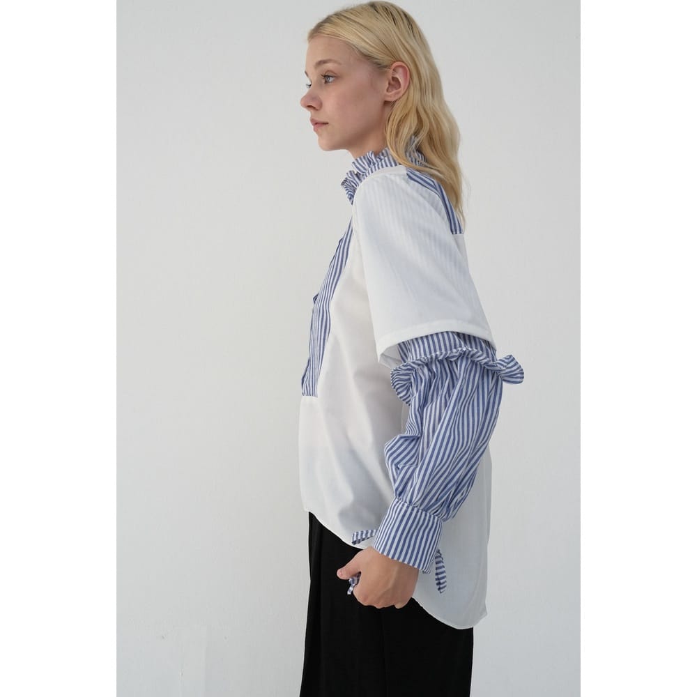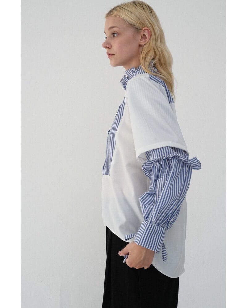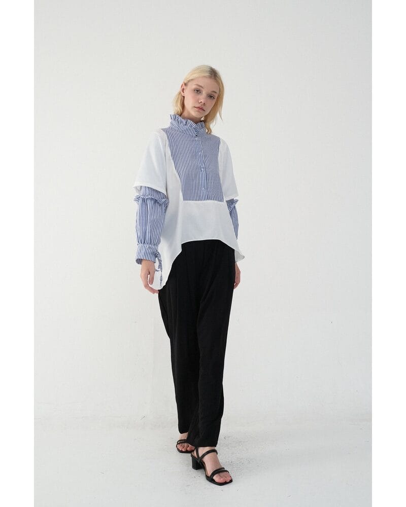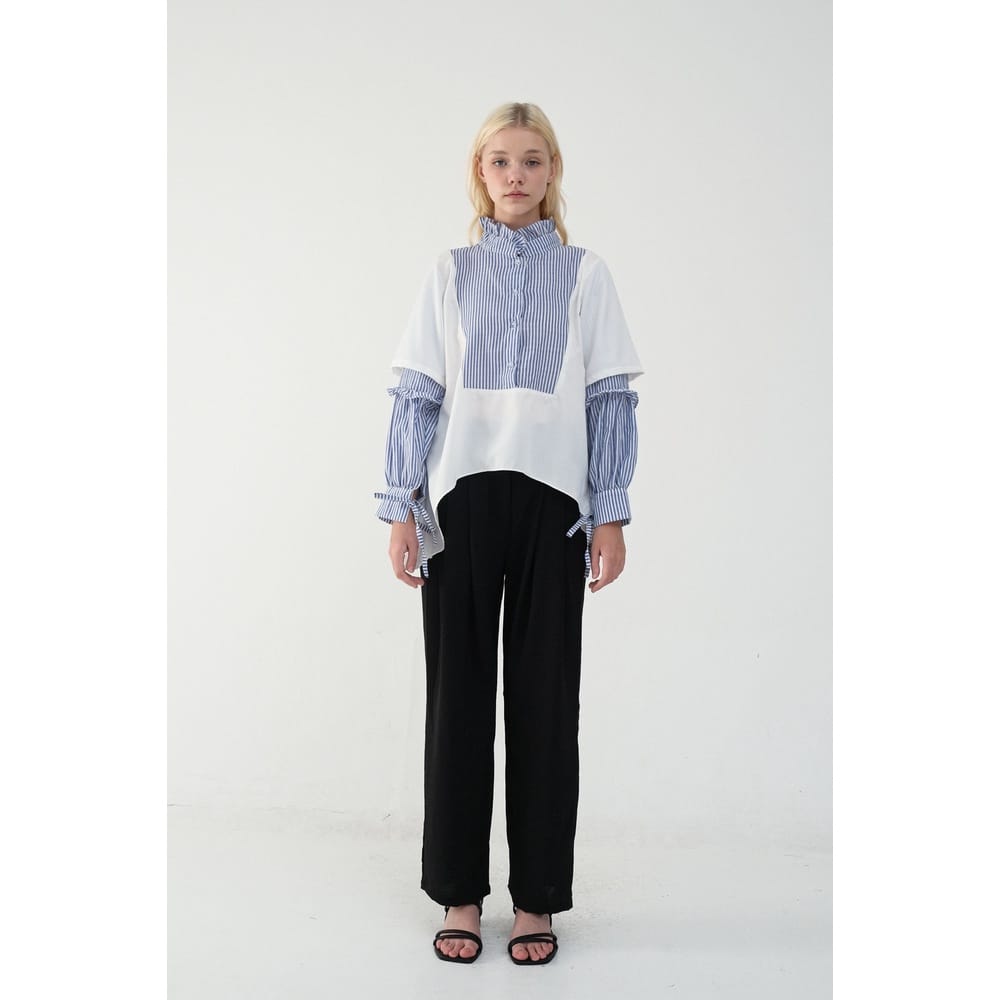 Atasan dengan desain layer stripe + plain yang chic dan beda dari basic top biasa. Hadir dalam dua pilihan lengan (pendek & panjang), cutting oversize dengan detail asimetris yang bikin look kamu standout. Bisa dipakai buat casual day out, ke kampus, atau semi-formal occasion.