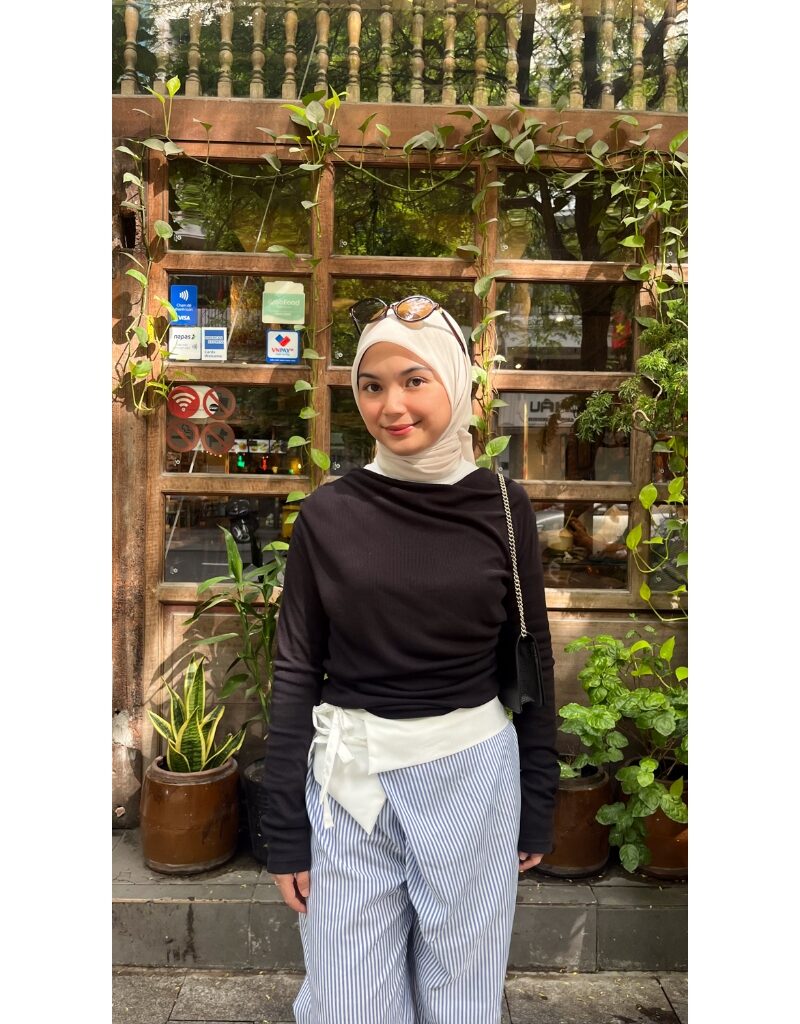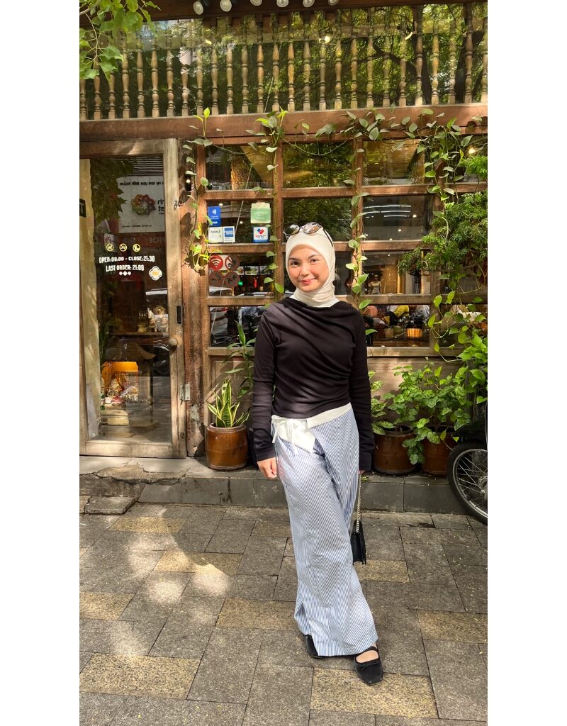 * Detail: Aksen unik di pinggang, effortless chic
