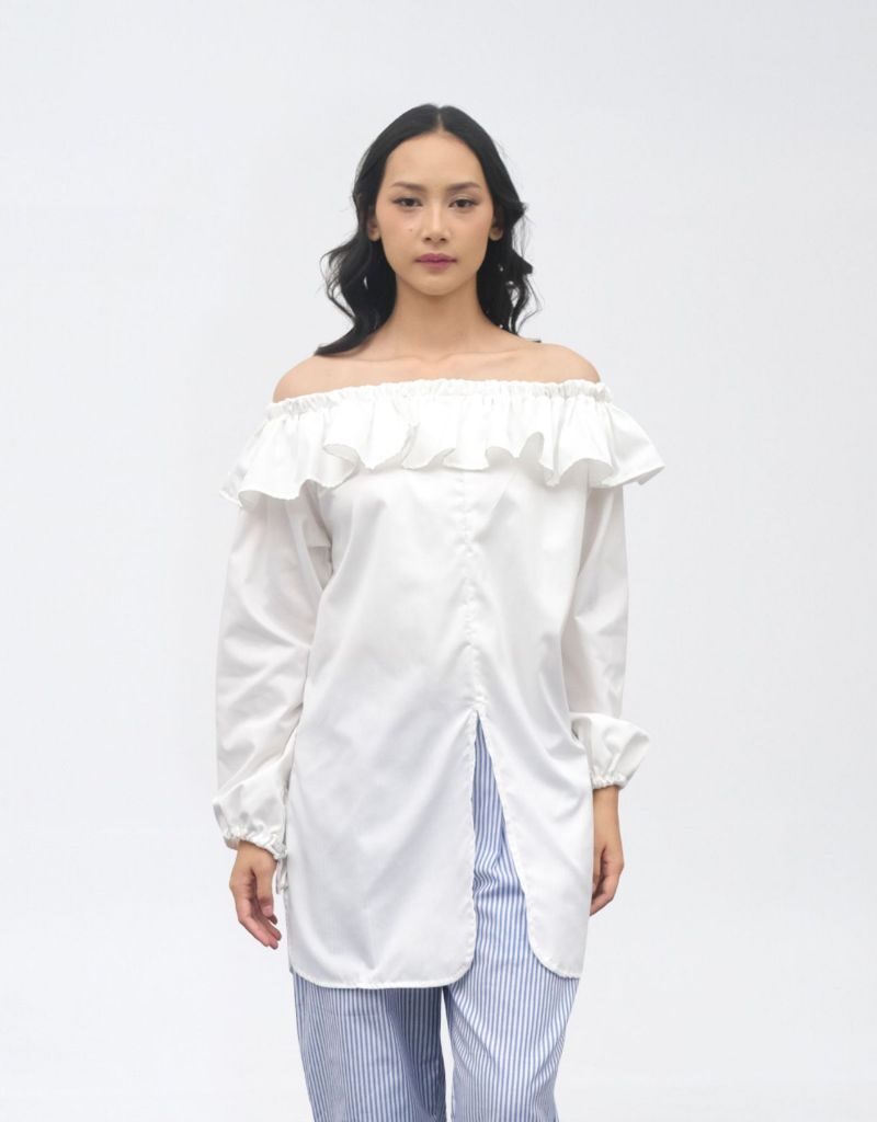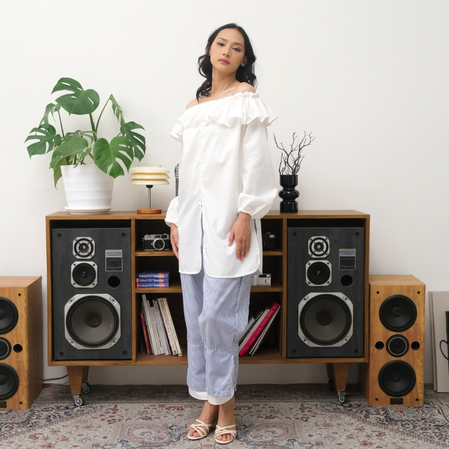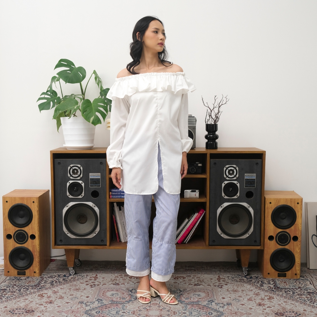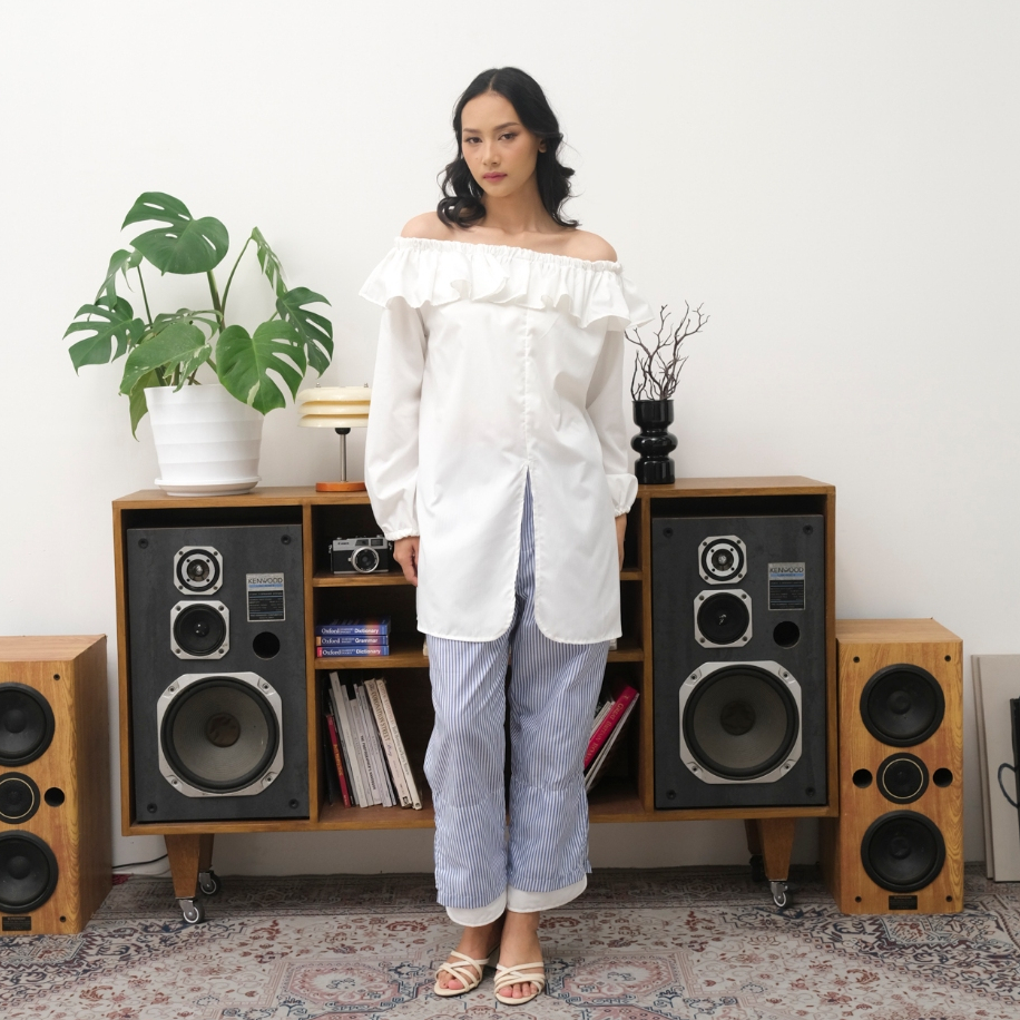 Tampil cantik & chic dengan atasan off shoulder putih yang feminin namun tetap nyaman!