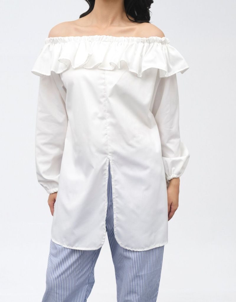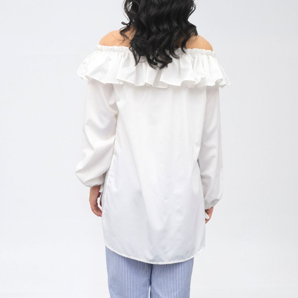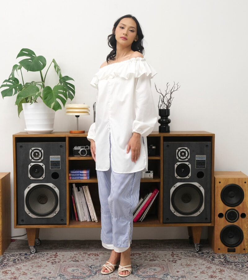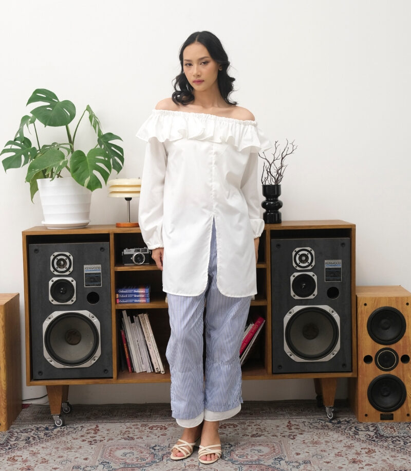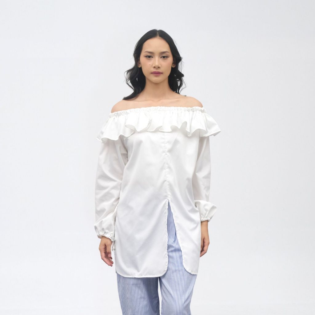Tampil cantik & chic dengan atasan off shoulder putih yang feminin namun tetap nyaman!