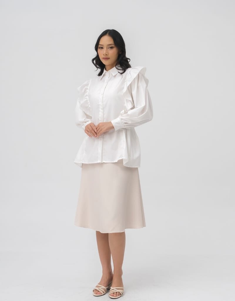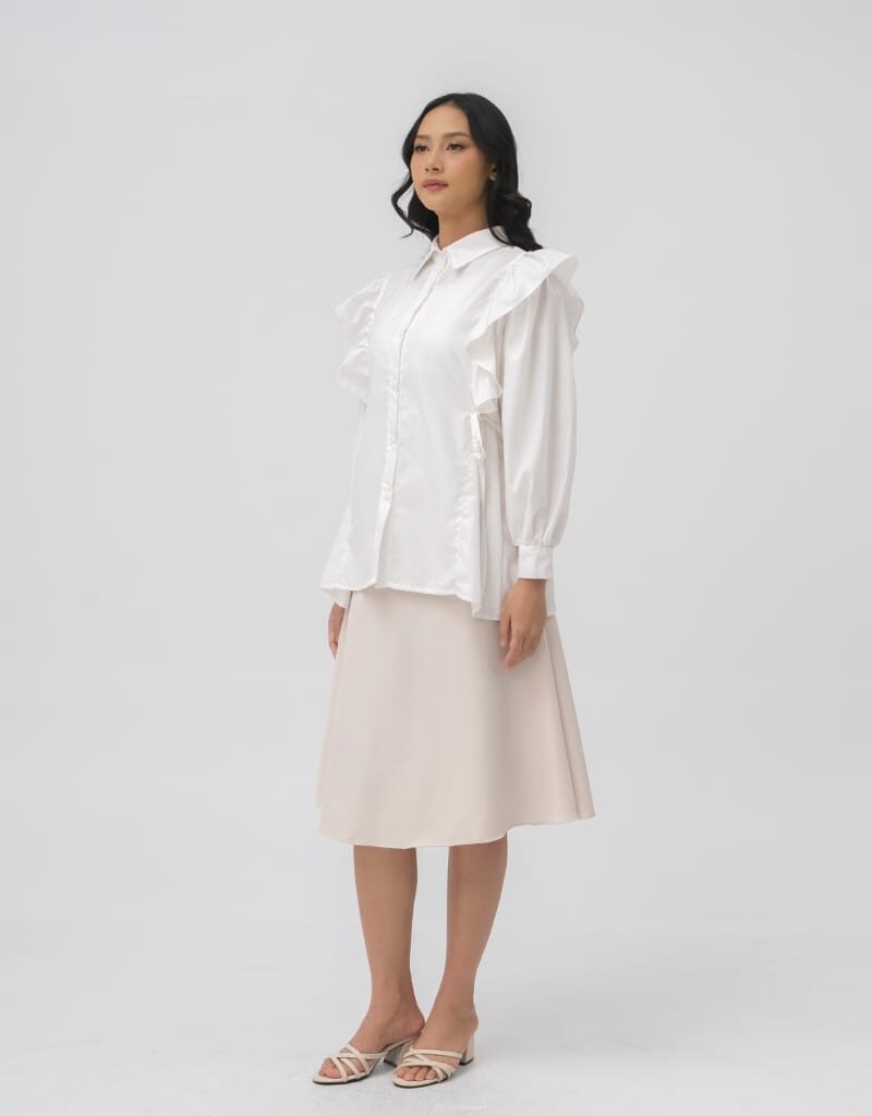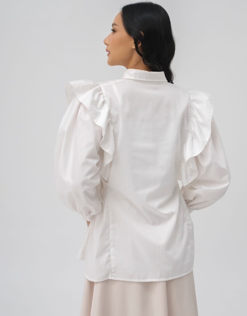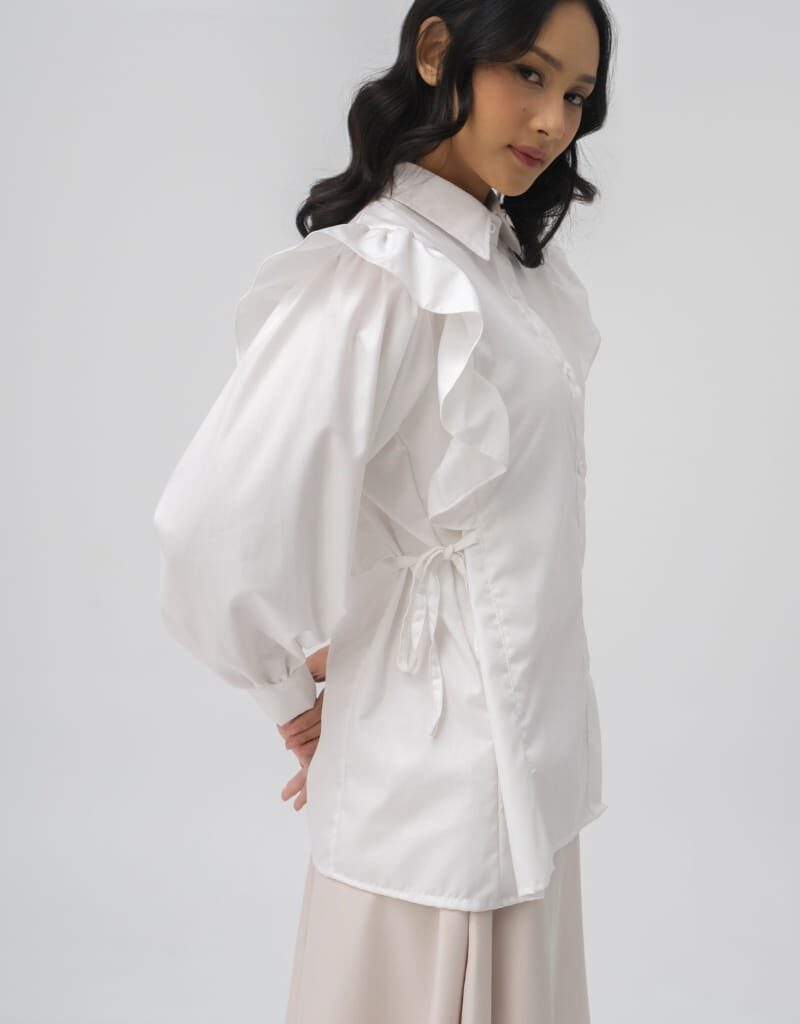 • Ruffle detail di bahu sampai bawah depan & belakang