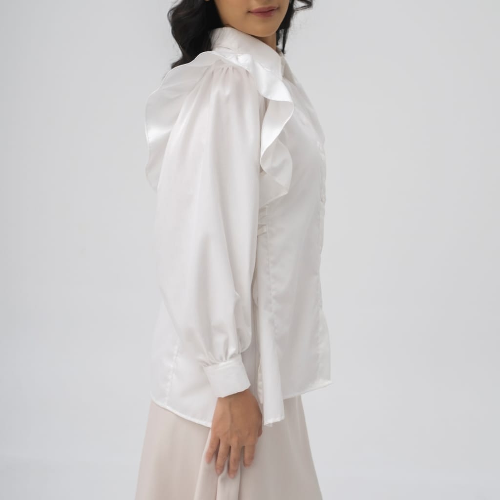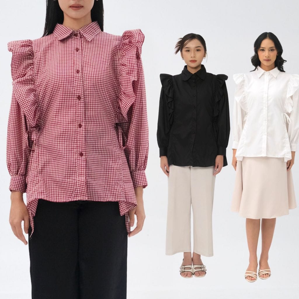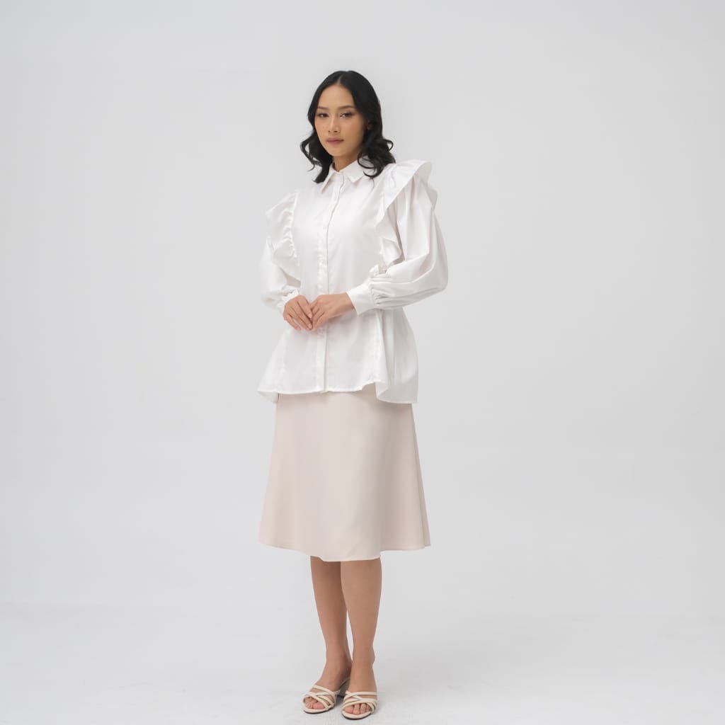 • Ruffle detail di bahu sampai bawah depan & belakang