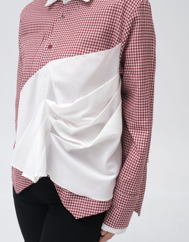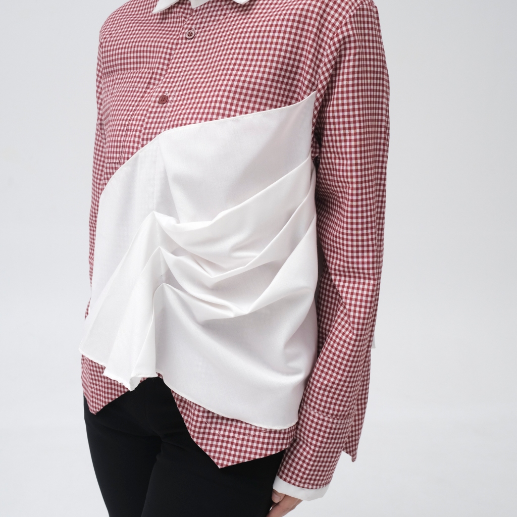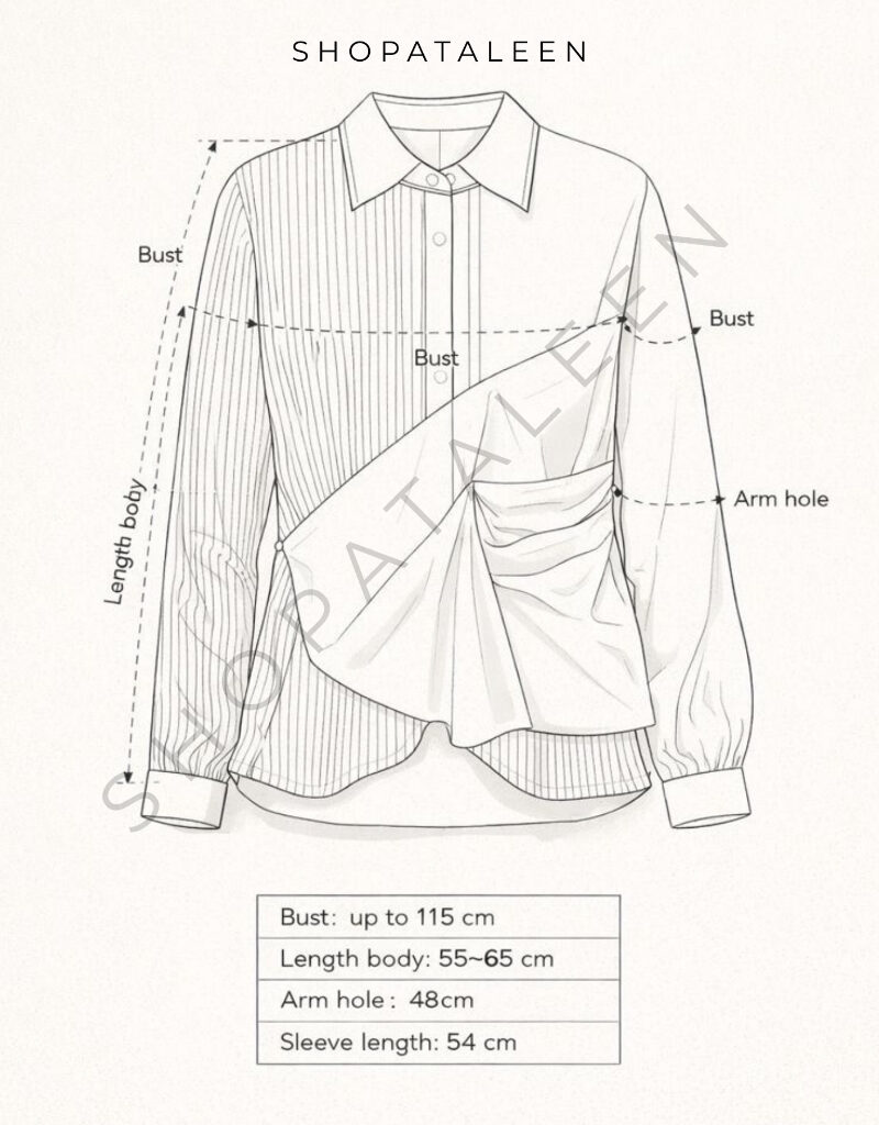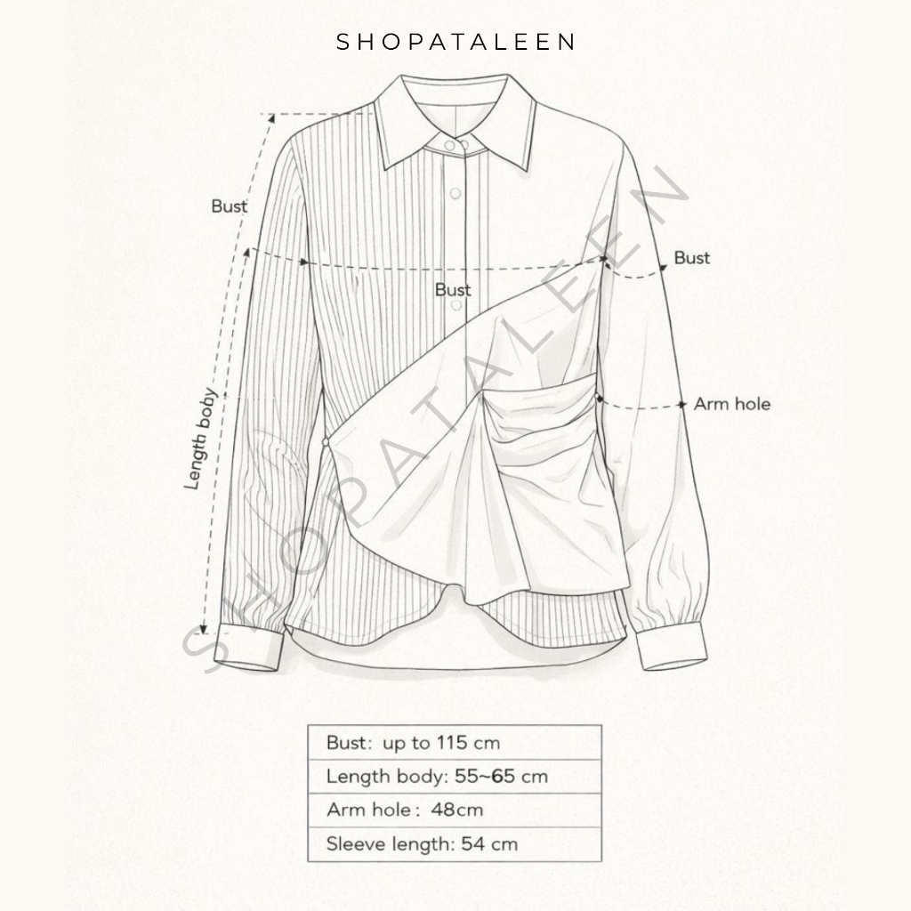 Yume Top hadir dengan desain chic dan edgy khas Shopataleen. Terbuat dari bahan adem yang nyaman dipakai seharian, dengan potongan oversize dan detail **fold drapery asimetris** di bagian depan yang bikin look kamu langsung standout.